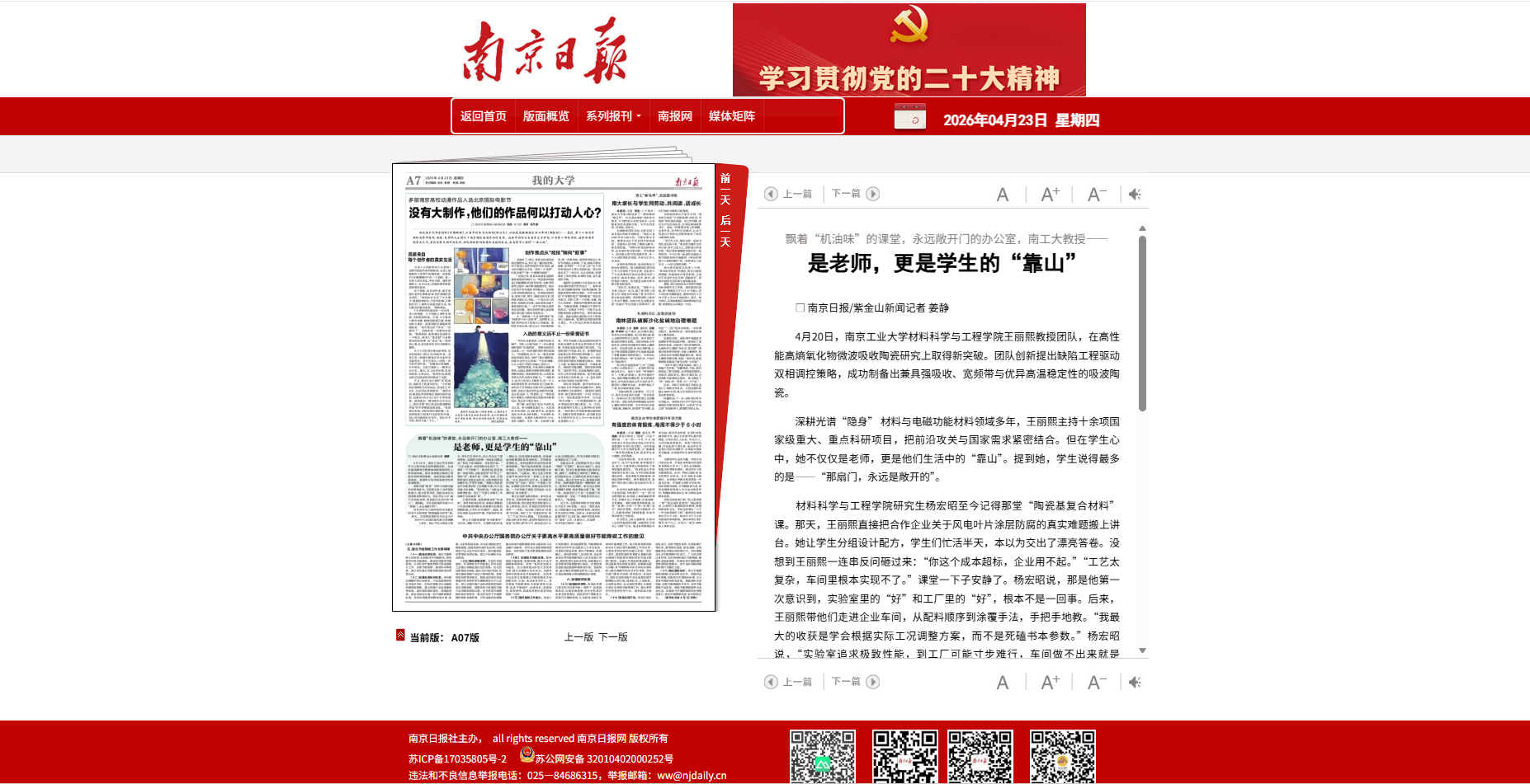 我所所长王丽熙教授获《南京日报》关注