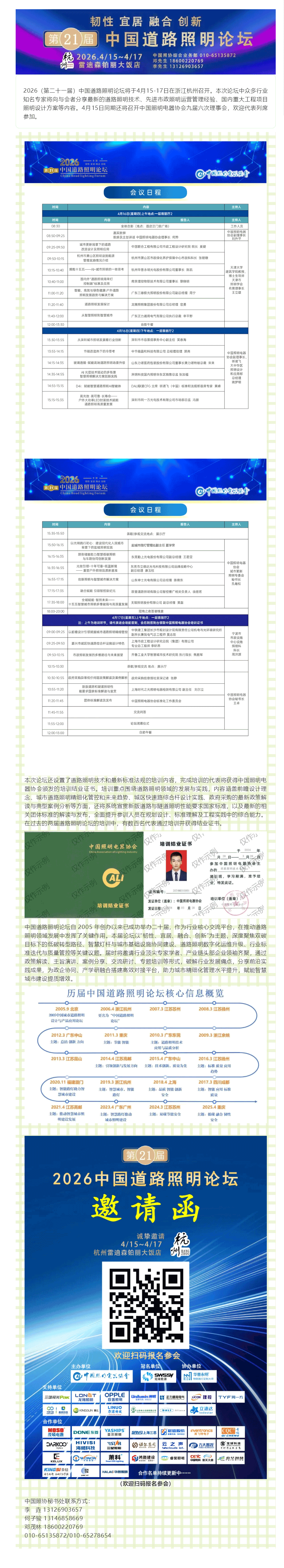 4月16日杭州||2026(第二十一届)中国道路照明论坛日程