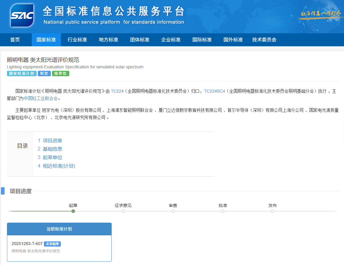 如今照明电器 类太阳光谱评价规范(20251283-T-607) 已正式立项,旨在: