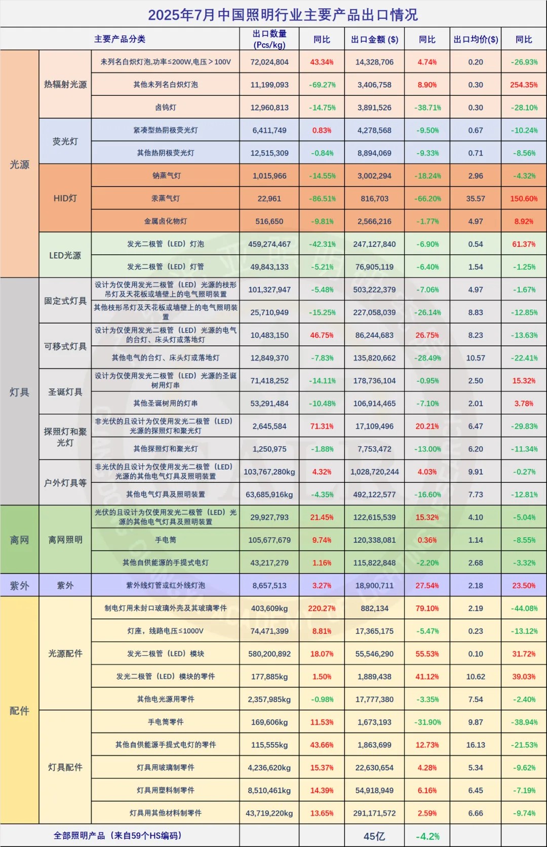 2025年7月中国照明行业出口快报