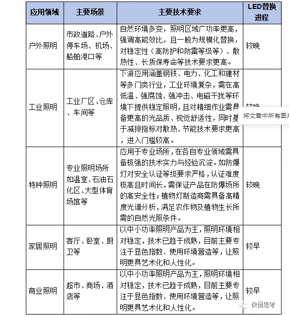 D、植物照明、体育照明、防爆照明等为代表的特种照明领域带来新兴市场空间