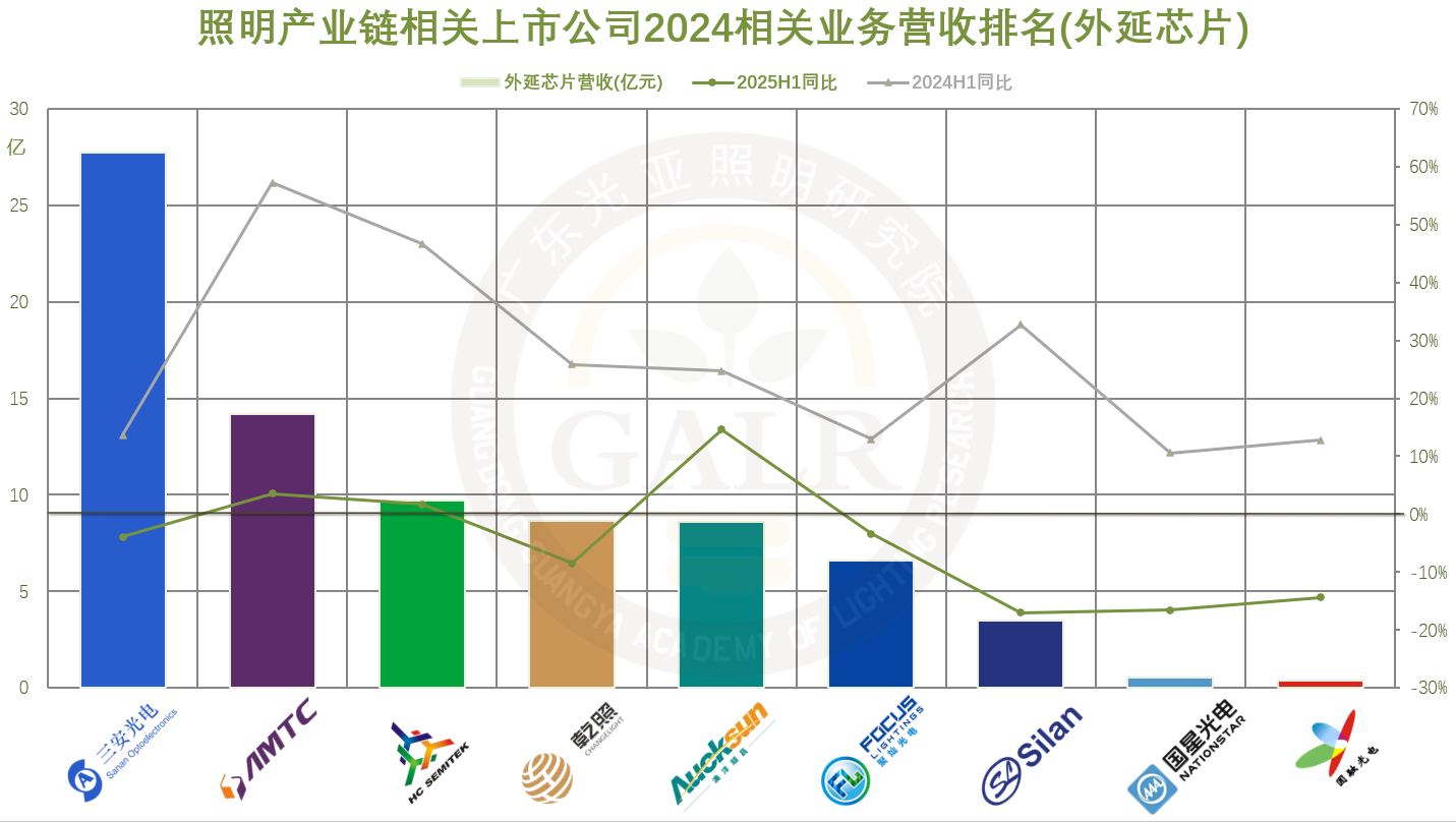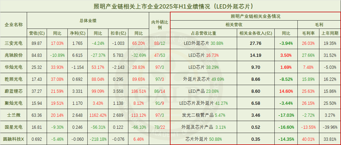 LED外延芯片板块“BIG6”格局虽依旧稳定,但和2024年同期全线飘红相比,下游需求萎缩的状况已传导至上游,也使得今年该板块无法复制“风景这边独好”的态势。