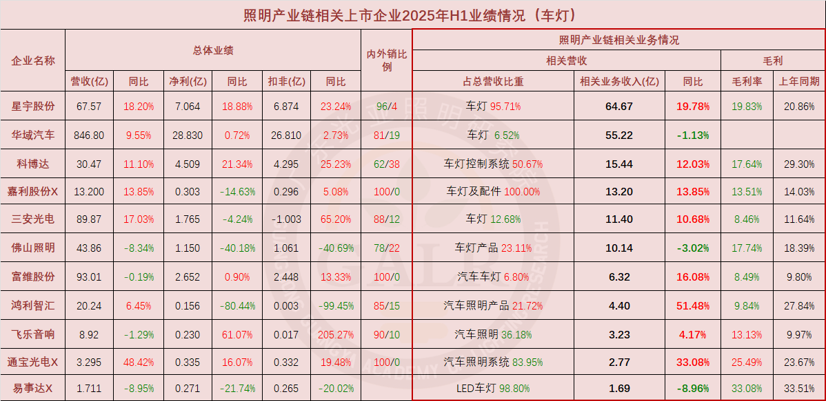 与通用照明板块不同的是,车灯业务在近年来LED/OLED/激光等新光源、纯电/插混/增程等新能源、自动驾驶、智能互联、自适应灯光、贯穿式尾灯等新技术/新应用的加持下,业绩普涨。