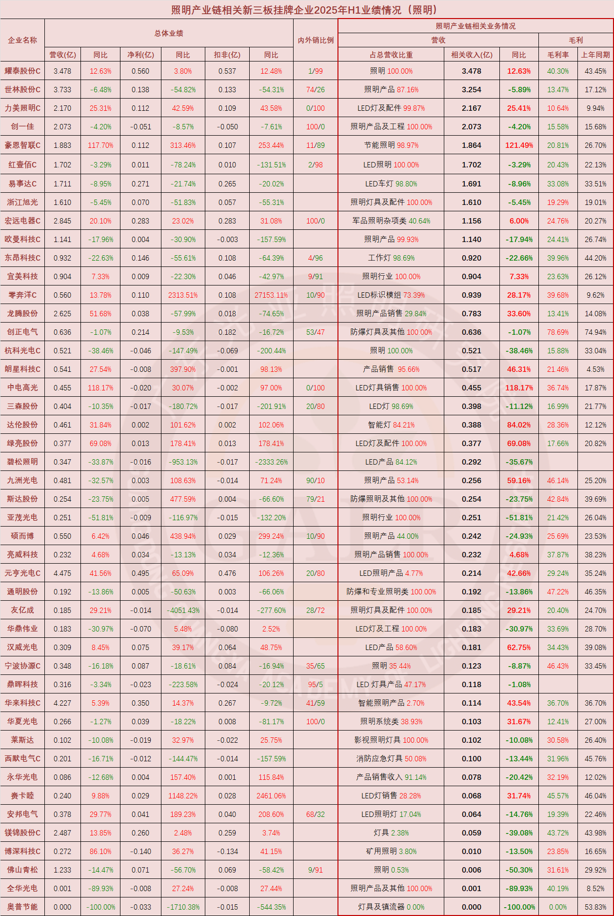 截至2025年8月31日,中国照明产业链相关上市公司的2025年半年报业绩相继出炉。本文整理了100家A股上市公司,7家H股上市公司和73家新三板挂牌公司等共计180家公司的报告业绩。尽量精准地提炼出其照明产业链相关的业务情况并做了相关业绩排名,以供参考。虽为管中窥豹,亦可一叶知秋,但求不会一叶障目。