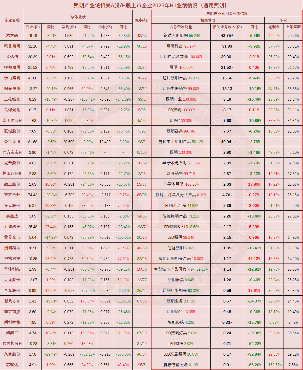 通用照明板块,2025年上半年突出体现的是营收承压挣扎,利润大幅下滑。