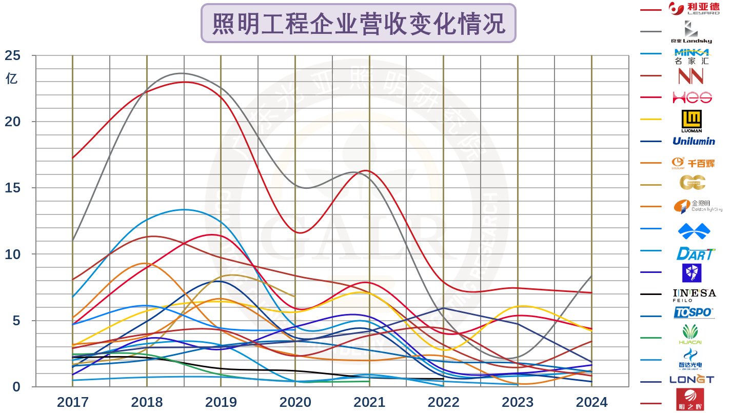 照明工程相关业务营收下滑的企业占75%,去年同期为59%,平均下滑幅度为35.0%;