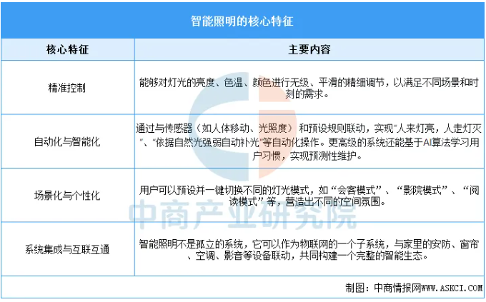 智能照明,是指利用物联网、云计算、人工智能等先进技术,让照明系统具备环境感知、智能分析、自动执行和持续优化能力,从而提供更节能、更舒适、更高效且可个性化定制的光环境解决方案。智能照明颠覆了传统照明“一开一关”的单一模式,其核心特征可以概括为以下四点: