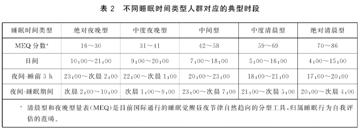 值得注意的是,该标准仅根据功能需求给定量化推荐值,不包含具体应用场所的推荐值,也不涉及色度、光生物安全等内容,仅聚焦于人眼非视觉通道响应,为不同场景的照明设计提供了灵活的应用基础。在核心的剂量推荐上,标准针对不同照明需求制定了精细化的数值要求:在节律稳定照明方面,按日间、夜间睡前 3 小时、睡眠期间等时段划分,明确了不同时段的参考平面、非视觉效应等效剂量(m-EDI)、节律刺激值(CS)等指标,例如日间坐姿特征眼位 1.2m 垂直面的 m-EDI 需≥250lx,CS 值 > 0.3;同时还根据人群睡眠类型的不同,将人群分为绝对夜晚型、中度夜晚型、中间型、中度清晨型、绝对清晨型五类,分别对应不同的光照时段标准。