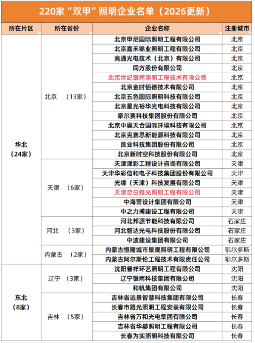 附部分名单,完整名单可关注“阿拉丁照明网”公众号,回复“2026双甲”